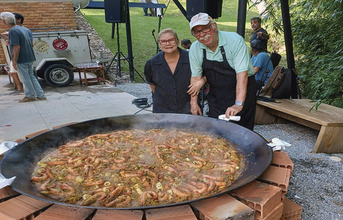 Para a chef Elza Matamoros, o espírito da paella típica de Valência, na Espanha, vai muito além do sabor. “É um prato feito para proporcionar descontração, convivência e momentos de lazer”, explica. E isso fica claro no ritual que acontece em torno da grande panela: 50 minutos de preparo, mexendo o arroz diante dos convidados, em um verdadeiro espetáculo gastronômico.