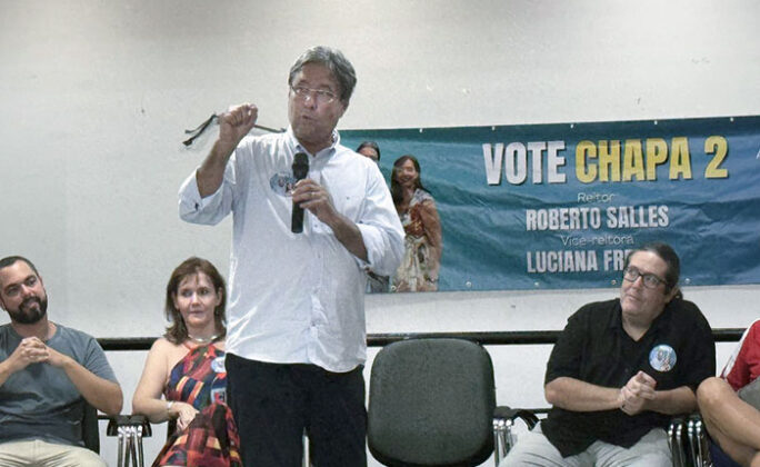 O professor Roberto Salles lançou nesta terça-feira (24) sua candidatura pela chapa 2 nas eleições para reitor da UFF em maio, tendo como vice a professora Luciana Freitas. O lançamento foi no auditório da Faculdade de Economia, lotado por professores, alunos e funcionários da universidade. Prometeu lutar por recursos federais e emendas parlamentares para expandir a instituição como fez em suas gestões anteriores (de 2006 a 2014), “para que a UFF volte a figurar no topo das universidades brasileiras”.